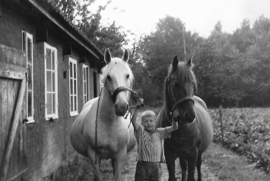 Billedet viser Finn på sine morforældres husmandssted i Løkkevang på Blemmelyng, 1960.